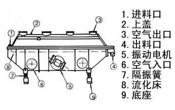 The product is new drying equipment vibration fluidized principles of design, with high efficiency, excellent performance characteristics, suitable for chemical, pharmaceutical, light and food, seeds, beverages, slag, alcohol, matches, fertilizer and other industries powder, dry granular material, cooling and other operations.